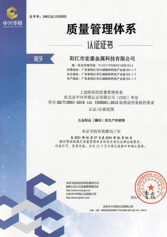 廣東宏惠金屬公司是家20多年一直專(zhuān)注鉆尾螺絲開(kāi)發(fā)與生產(chǎn)的企業(yè),是國(guó)內(nèi)較早做鉆尾的廠家之一,同時(shí)也是國(guó)內(nèi)專(zhuān)業(yè)開(kāi)發(fā)生產(chǎn)鉆尾螺絲的企業(yè)之一。 我司地址為于廣東省陽(yáng)江市江銀嶺科技園距沈海高速白沙出口不到2公里,距陽(yáng)江高鐵站也只有十余公里交通便利。 公司占地120畝,擁有超500臺(tái)套專(zhuān)業(yè)設(shè)計(jì) 生產(chǎn) 檢測(cè)設(shè)備。一個(gè)超200人的專(zhuān)業(yè)團(tuán)隊(duì),能夠嚴(yán)格按照ISO9001質(zhì)量體系要求生產(chǎn)符合GB DIN AS3566 ANSI JIS BS等標(biāo)準(zhǔn)的產(chǎn)品,生產(chǎn)銷(xiāo)售各種高品質(zhì)緊固件系列產(chǎn)品,為中高端客戶提供優(yōu)質(zhì)服務(wù)。也可按照客戶要求設(shè)計(jì)生產(chǎn)各種鉆尾,年產(chǎn)高品質(zhì)碳鋼 不銹鋼鉆尾螺絲2萬(wàn)余噸.在各大客戶的鼎力支持下產(chǎn)品暢銷(xiāo)全國(guó),并遠(yuǎn)銷(xiāo)亞 非 拉 歐等地,在這20多年發(fā)展的道路上我司堅(jiān)持“以質(zhì)量求生存,以信譽(yù)求發(fā)展”的精神理念不斷完善公司體系。